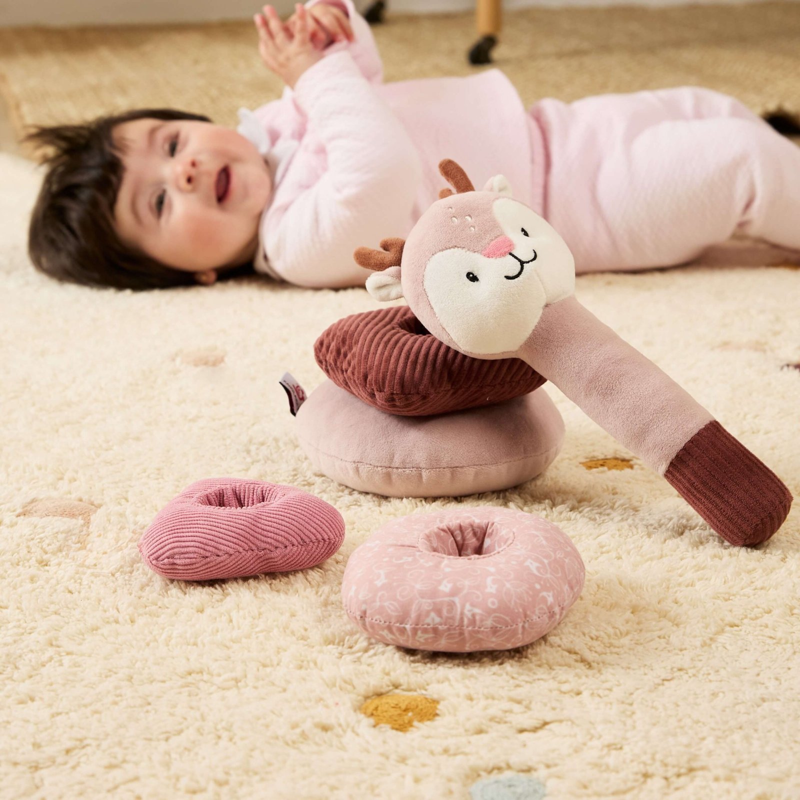 El Juguete de anillos apilables Baby Deer de Miniland está especialmente diseñado para bebés que comienzan a interactuar con objetos, experimentar con el movimiento y desarrollar habilidades motoras básicas.