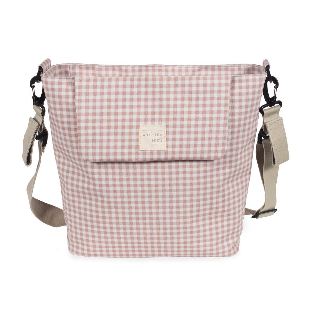 Bolso cambiador I Love Vichy rosa para silla de paseo que incluye cambiador para bebe.