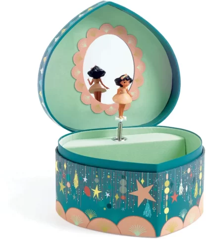-Happy party es una caja de música en forma de corazón bellamente ilustrada para guardar joyas y secretos.