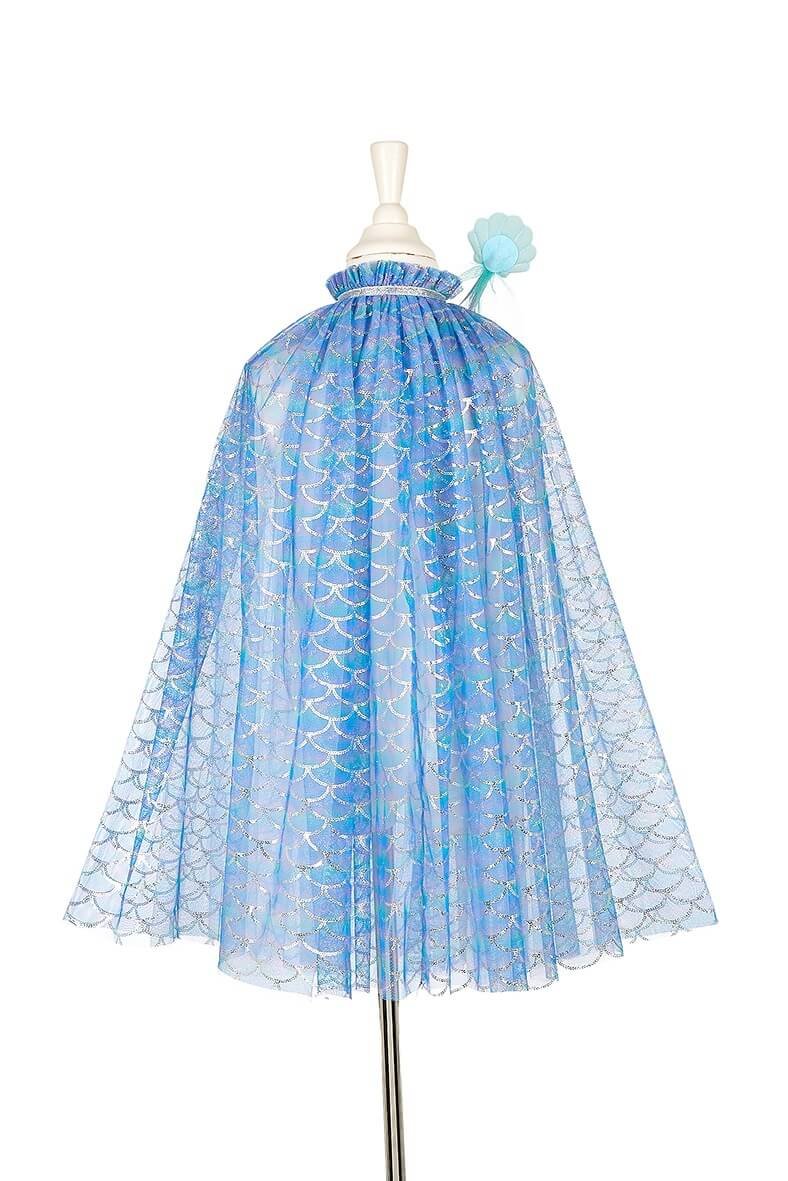 La capa d sirena es deslumbrante con las brillantes escamas. En tonos iridiscentes en azul y verde que capturan la luz, esta capa es ligera y fluida.