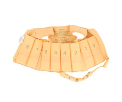 Este chaleco dispone de 8 compartimentos donde cada uno de ellos tiene 3 elementos de flotabilidad. Total 24. Esos elementos son los que se pueden quitar poco a poco para que el niño/a mejore su capacidad de flotar sin ayudas. Otros chalecos solo tienen 8 piezas por lo que la capacidad de flotación cambia más bruscamente al quitar las piezas de una en una.