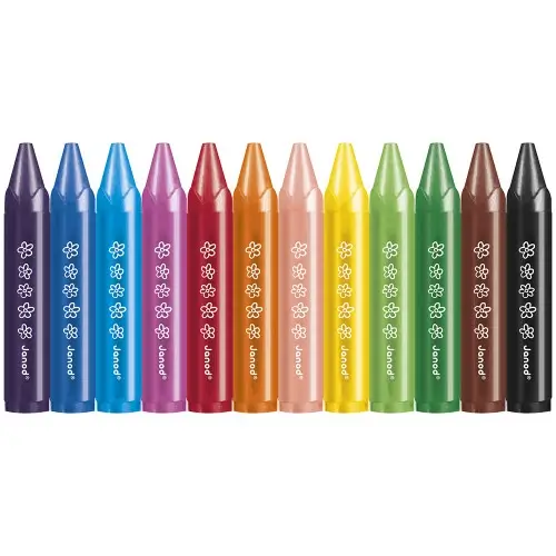 Gracias a sus grandes ceras, el bebé podrá empezar a dibujar fácilmente. Negro, marrón, verde claro y oscuro, amarillo, rosa claro, naranja, rojo, malva, azul claro y oscuro, violeta: ¡todo lo que necesitan para crear sus primeros dibujos!