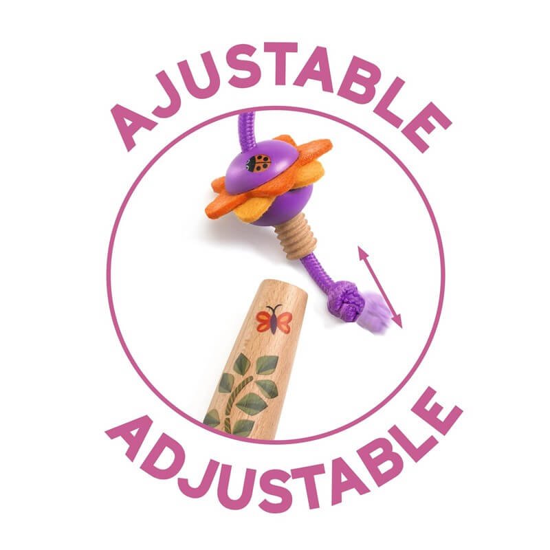 Florita es una alegre cuerda para saltar con mangos en forma de flor , fabricada con madera certificada FSC®. Sus coloridas flores hacen que saltar sea aún más divertido para los niños. La longitud de la cuerda se ajusta fácilmente a la altura del niño. Simplemente desenrosca el mango en forma de flor y ajusta los nudos de la cuerda para determinar la longitud correcta.