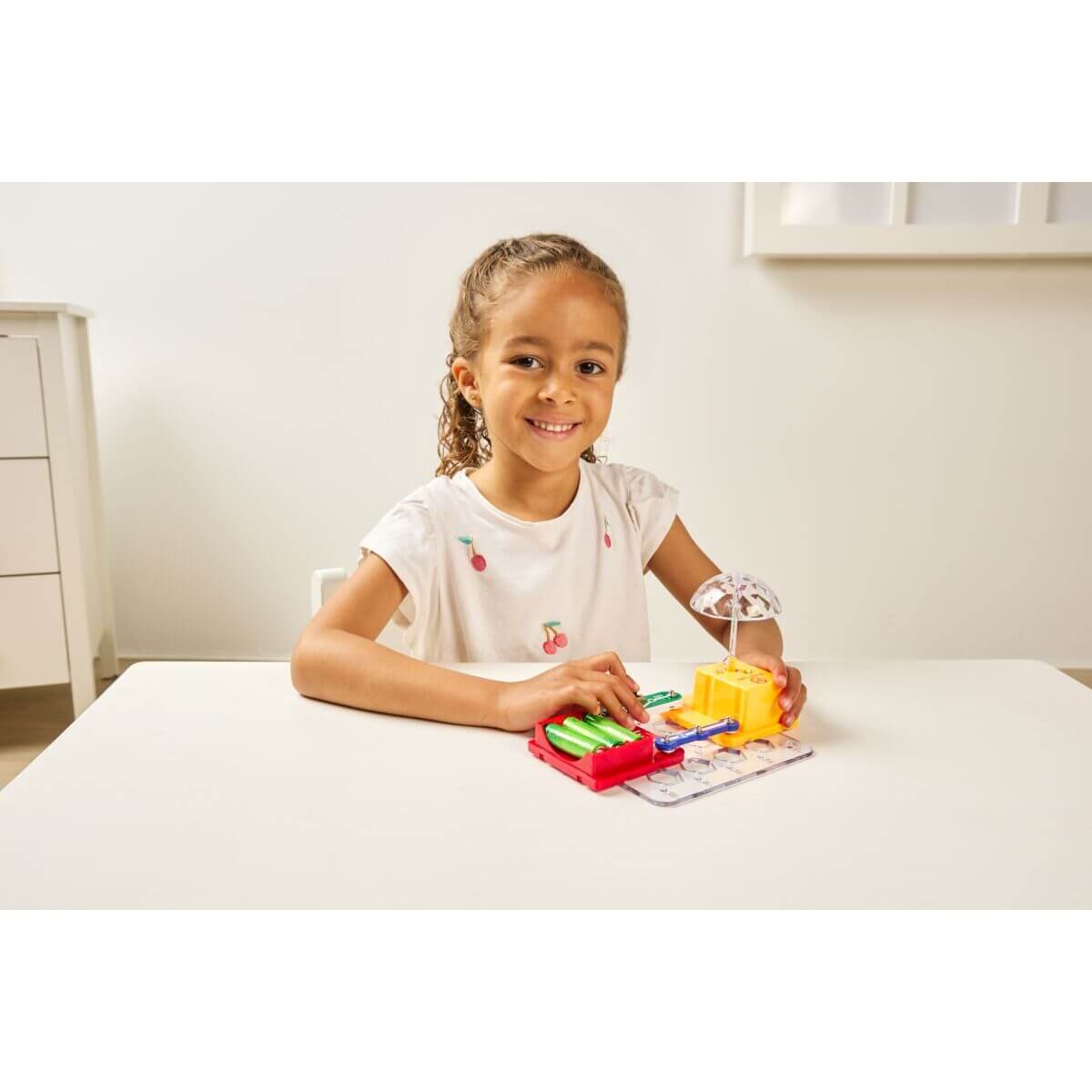 Los niños y niñas aprenden a conectar un circuito, comprender el flujo de la corriente y reconocer los componentes eléctricos esenciales, todo mientras construyen su propia creación.