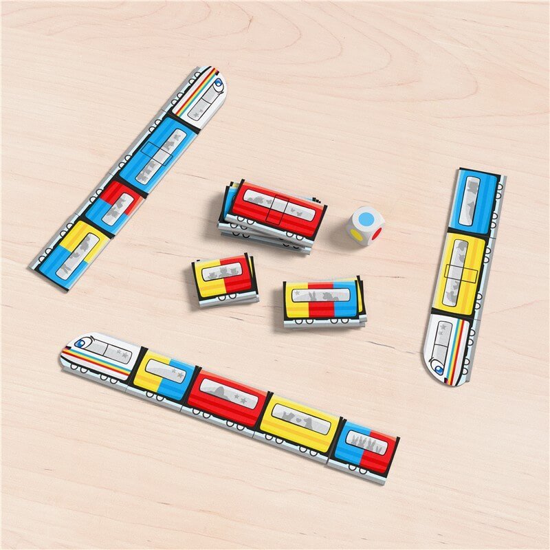 Un divertido juego de iniciación perfecto para los más peques, donde construirán su propio tren combinando colores 🎨🚃. Con piezas grandes y manejables, los niños lanzan el dado y añaden vagones siguiendo los colores, creando trenes únicos mientras juegan y aprenden.