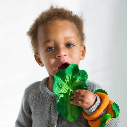 KENDALL THE KALE es un mordedor para bebés en forma de Kale que aliviará las molestias de la dentición de los más pequeños y a su vez les introducirá en los beneficios de unos hábitos alimentarios saludables.