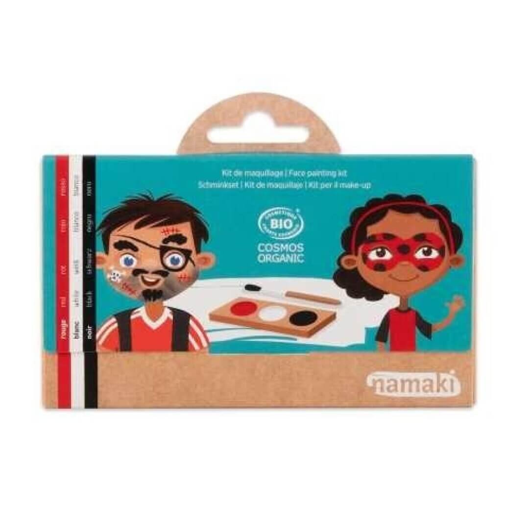 Conviértete en un pirata o en una mariquita con este kit de maquillaje hipoalergénico y orgánico certificado, al agua, que contiene una paleta de 3 colores.