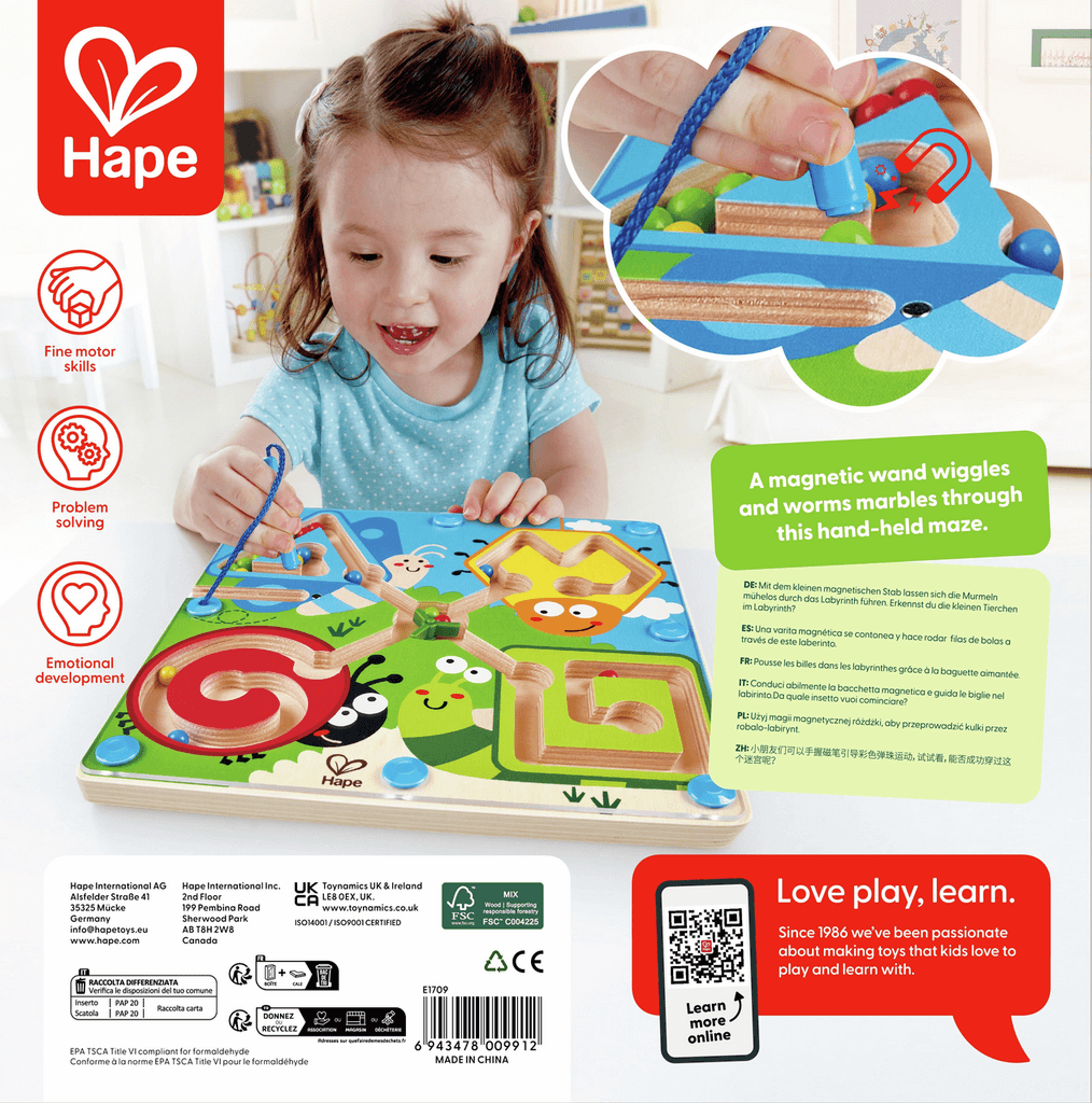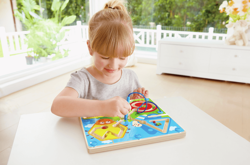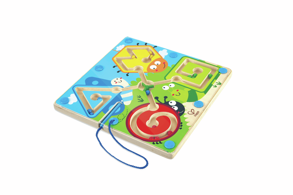 El lápiz magnético, hace que las bolas avancen a través de este laberinto portátil.