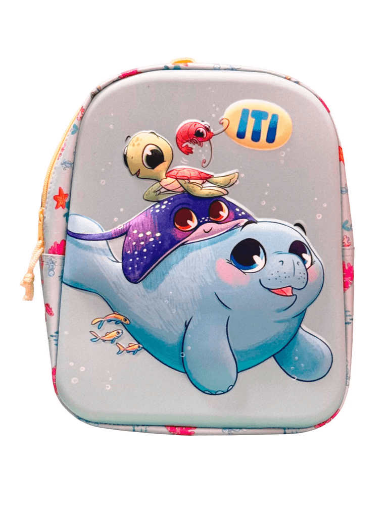¿Listos para una nueva aventura? Con la mochila escolar de Iti, el pequeño manatí explorador, cada día se convierte en una expedición llena de descubrimientos, juegos y sonrisas. Medidas: 27 cm x 10 cm x 22 cm