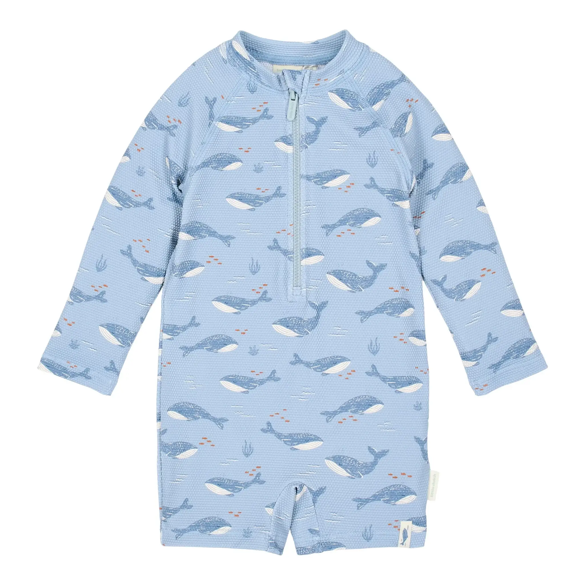 La cremallera larga facilita poner y quitar el traje de baño, incluso cuando tu hijo está mojado y lleno de arena.