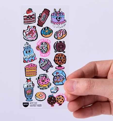 Holográficas, fluorescentes y brillantes, nuestras pegatinas están disponibles en una gran variedad de tamaños, formas y temas.