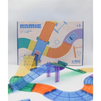 El Nomic Clack VROOM 100 piezas transforma la construcción magnética en una emocionante pista de coches llena de curvas, rampas y velocidad.