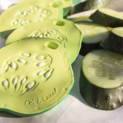 ¿Quién quiere una ensalada de pepino? Pepino the Cucumber es un mordedor para bebés, un juguete de baño y de juego sensorial. Inspirado en un pepino cortado en rodajas, su diseño tiene texturas realistas que ayudan a estimular los sentidos de los bebés y a aliviar las encías de la dentición. ¡Introduce a los niños en un estilo de vida saludable desde pequeños!