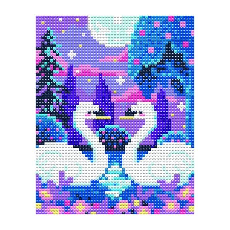 De la colección «Les Ateliers du Calme», este kit contiene: 1 cuadro autoadhesivo (20,7 x 24,4 cm), 3900 pedrería (14 colores, incluyendo 3 fosforescentes), 1 punzón, 1 cuadrado de cera, 1 bandeja ranurada y 1 manual de instrucciones.