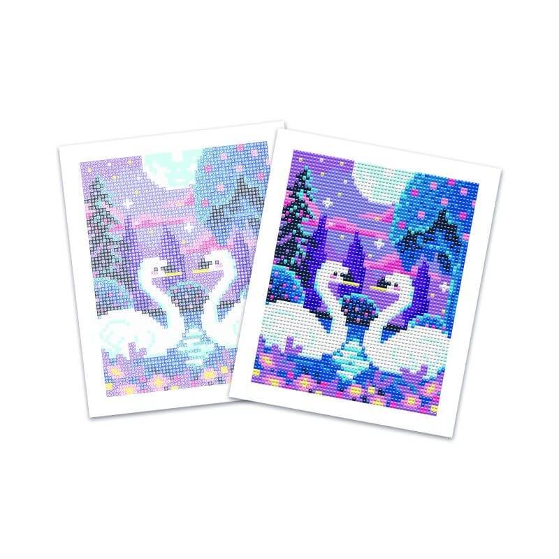 Poco a poco, la pareja de cisnes y su magnífico entorno cobran vida, ¡deleitando a toda la familia!
