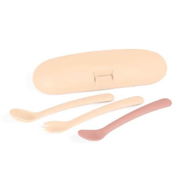 Práctico set de cubiertos infantiles anatómicos, diseñados para que los más pequeños puedan aprender a utilizarlos por sí mismos.