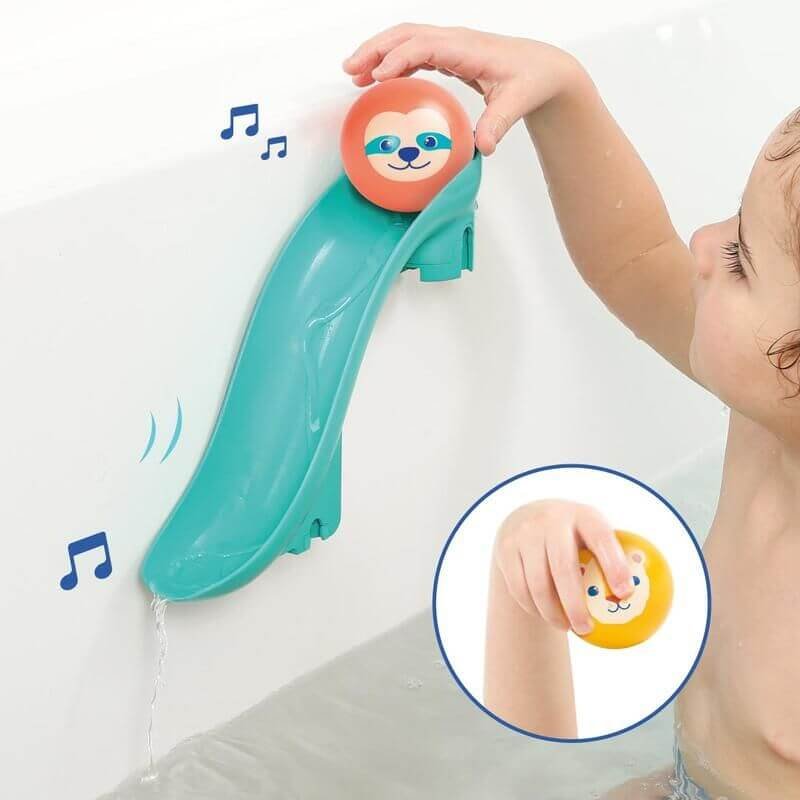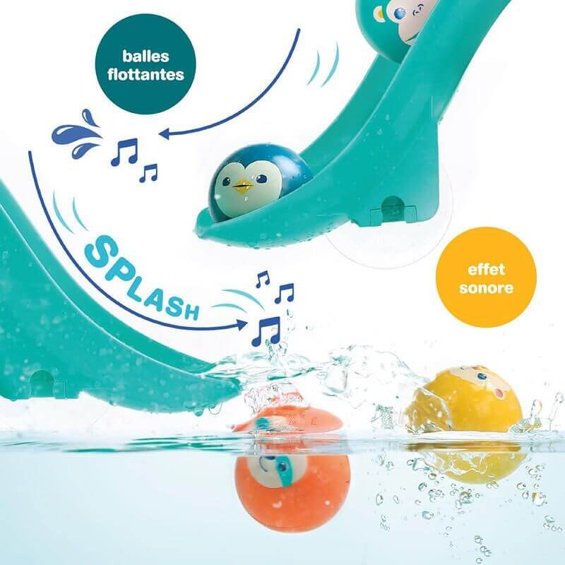 Contenido: 2 toboganes XXL + 4 bolas flotantes con sonidos