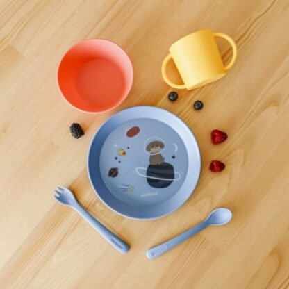 El Mealset Explore de Miniland es una vajilla de aprendizaje diseñada para acompañar a los niños en su transición hacia una alimentación más autónoma.